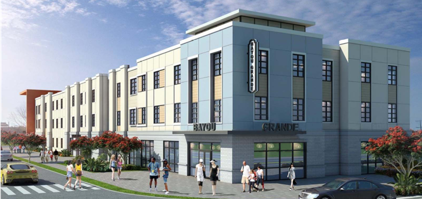 All Bayou Grande phases are planned to feature modern, in-unit amenities, such as granite countertops, new appliances, track lighting, and wood-style flooring. Residents will also enjoy popular community amenities, such as fitness centers, community lounges, playscapes, dog parks, swimming pools, and cyber cafes. All these improvements will add value to the surrounding community, create excitement in downtown housing, and help to meet critical community needs.